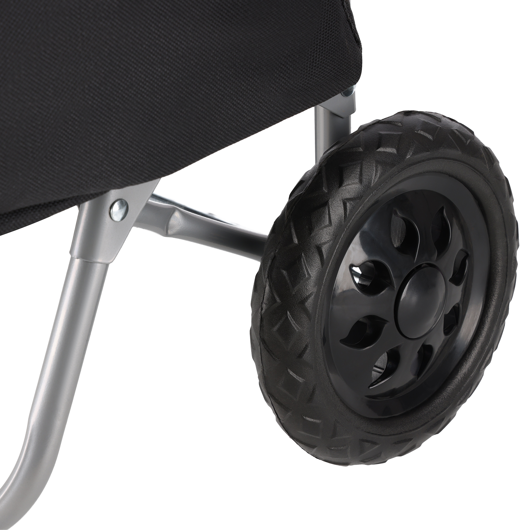 Ergonomiczna rączka zapewnia komfortowe prowadzenie wózka nawet przy większym obciążeniu. Stabilne kółka wykonane z PVC gwarantują płynną jazdę po chodniku, asfalcie czy sklepowej podłodze, a ich odporność na ścieranie przekłada się na długą żywotność.